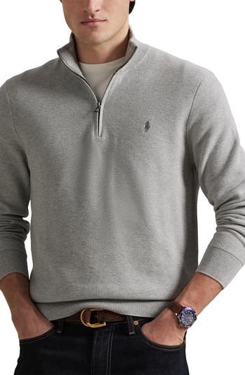 A bit of texture elevates the beloved quarter-zip knit from a soft cotton-forward blend and authenticated with a polo pony stitched on the chest.