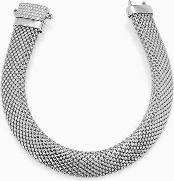 The Meshmerizing Bracelet is a stunning blend of intricacy and elegance, featuring an exquisite mesh design that shimmers with every movement. Crafted in Italy, its secure box clasp closure not only adds a refined touch but ensures the bracelet stays comfortably in place, making it perfect for any occasion.