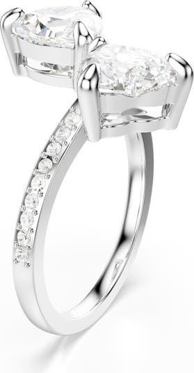 Inspired by the idea of intersecting hearts, this rhodium-plated ring features a pair of Swarovski crystals cut in the sweetest shape there is.