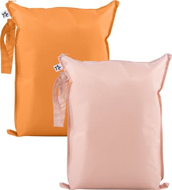 - MULTIPLE USES: Our Wet Bags are perfect for storing messy items, they can be used as diaper storage, breast pump storage, general travel bags, swimsuit bags, daycare bags and more! Great for on-the-go use, simply fold ups and fits in your diaper bag or tote. The strap handle has a snap closure that allows you to attach the wet bag to the stroller or hang anywhere for storage use.