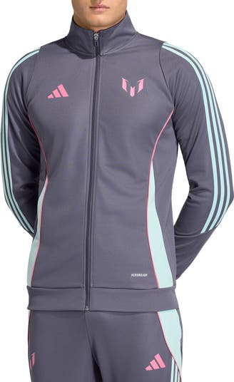Argentine soccer phenom Lionel Messi brings his high-scoring energy to an adidas-collab track jacket made entirely of recycled fibers and designed to wick away sweat to keep you comfortable whether you're playing or relaxing. Messi's iconic monogram pairs with an adidas Trefoil logo to kick up the look of your style game in any activity.