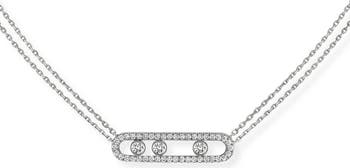 A pavé oval wraps around three bezel-set diamonds that represent the love of yesterday, today and tomorrow on this 18-karat-gold two-strand chain necklace.