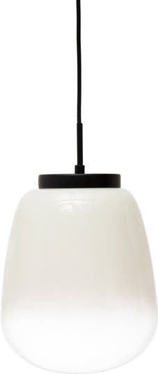 - Milky white to transparent ombre glass ceiling light with black metal canopy; 8' cord