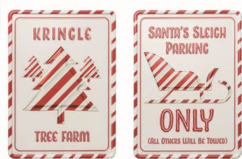 Enhance your holiday decor with the Transpac Metal Candy Cane Sign Set of 2 These charming wall sign panels feature a delightful candy cane design perfect for Christmas celebrations Each sign measures 13 inches in height and 9.5 inches in length with a slim width of 0.25 inches making them easy to display in various locations Crafted from durable metal these multicolor signs are designed to withstand the festive season and can be easily cleaned with a simple spot or wipe The set of 2 allows for versatile decorating options whether you hang them on your walls or use them as part of a festive display Bring the spirit of Christmas into your home with this delightful candy cane sign set