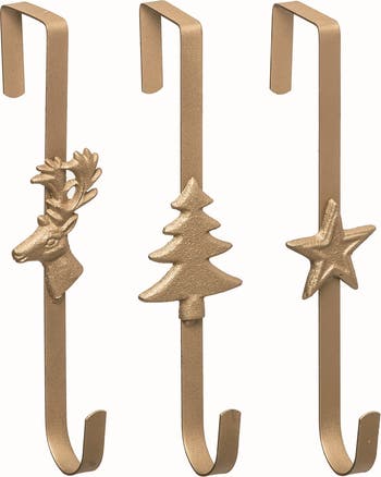 Enhance your holiday decor with the Transpac Metal Christmas Icon Wreath Holder Set of 3 This set includes three beautifully designed metal wreath holders perfect for displaying your favorite Christmas wreaths Each holder measures 11.81 inches in height 2.76 inches in length and 5.12 inches in width featuring a stunning gold finish that adds a touch of elegance to your home Made from durable metal these holders are designed for easy use and can be spot or wiped clean to maintain their shine Ideal for the Christmas season these hooks and hangers are a must have for your festive decorations