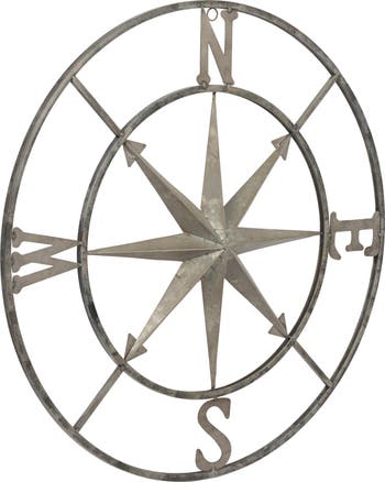 Metal Compass Wall Décor, Distressed Silver