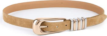 High-shine hardware mixes finishes against the plush suede backdrop of this belt that wraps up all your casual-chic looks.