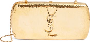 A hammered finish brings light-catching texture to this sleek frame clutch made in Italy from polished metal and finished with the iconic interlocking YSL logo.