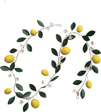 - A vibrant metal garland adorned with lemons and leaves, bringing a lively splash of color and nature's charm