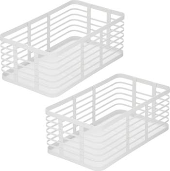 - SLEEK DESIGN - This basket features a flat, open wire style for easy visibility while a reinforced mesh base prevents smaller items from falling through; Integrated handles facilitate easy transport