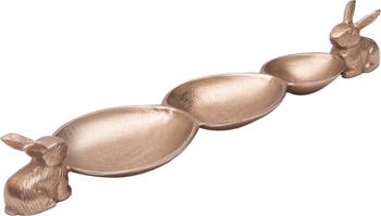 Metal Solid Bunny Rabbit Easter Spring Egged Sectional Serving Platter 20.5"