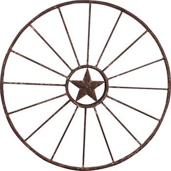 - Add a rustic and western touch to the walls with this metal wagon wheel with star wall decor in a distressed finish