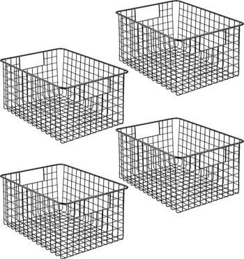 These Kitchen Organizer Bin Baskets by mDesign make it simple and easy to store and organize everything from dry food items, snacks, cereals, and canned goods to sauces, boxed or bottled drinks, seasonings and more. Each basket features built-in handles that make it easy to transport items from shelf to table to counter or island. The versatile metal design works with any decor. Mix and match these baskets with other mDesign bins with the same design and color to create a custom storage solution for your home. modern living by Design.
