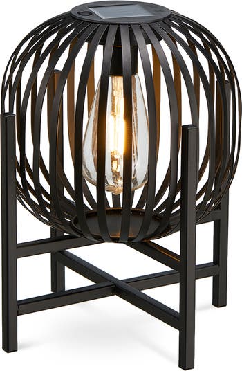 Inspired by traditional woven lanterns, this innovative design features a vintage Edison bulb that casts intriguing lights and shadows, adding artistic beauty and visual interest to your space. Crafted from durable, weather-resistant powder-coated metal and plastic, it's ideal for year-round use. This eye-catching and convenient solar light is a great addition to your dining table, cocktail time, or yard games!