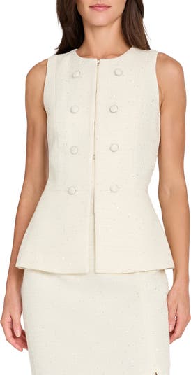 A sprinkling of sparkle adds festive appeal to a trend-right tweed vest offered in a snowy shade.
