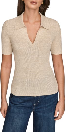 Twinkling metallic shimmer elevates this collared sweater covered in ribbing for a close fit.