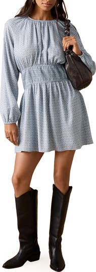 MANGO TEEN Metallic Cutout Long Sleeve Dress, Alternate, color, Sky Blue