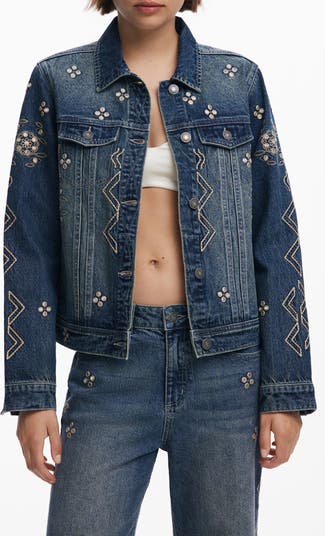 Metallic Embroidery Denim Trucker Jacket