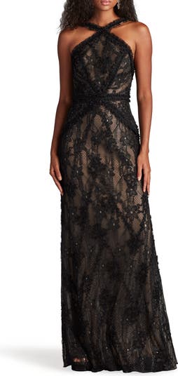 Frilly bits and sparkling blooms animate a deeply charming gown designed to show off your shoulders and get glasses raised in tribute.