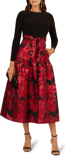Adrianna Papell Metallic Floral Jacquard Long Sleeve Maxi Dress