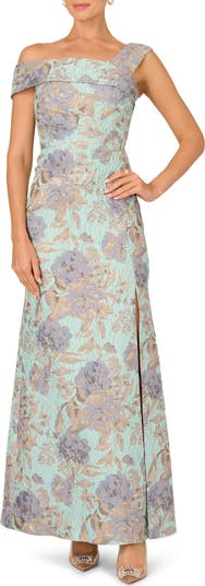 A hint of shimmer catches the light as you make your grand entrance in this elegant one-shoulder mermaid gown. A soaring side slit gives easy movement to the floor-length skirt.