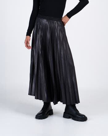 This maxi length pleated skirt is designed with a flattering full shape and glittery elastic waistband. Crafted from soft shimmer jersey, the fabric catches the light beautifully with every movement. Lightweight yet drapey, it’s ideal for special occasions and partywear, providing a balance of glamour and ease. It pairs effortlessly with the Silky Collection or Shimmer Betty Cowl for a coordinated, refined look.