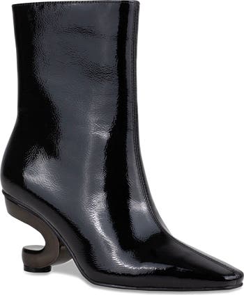 Our basic bootie sits atop our sculptured geometric metallic heel
