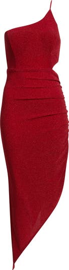 Metallic Knit One-Shoulder Asymmetric Gown