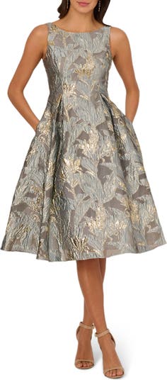 Gilded leaves texture this chic cocktail dress designed in a sleeveless silhouette and perfected with a pair of pockets.