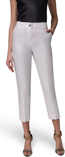 Linen pants are simmered in shimmer to take the look from polished to posh.
