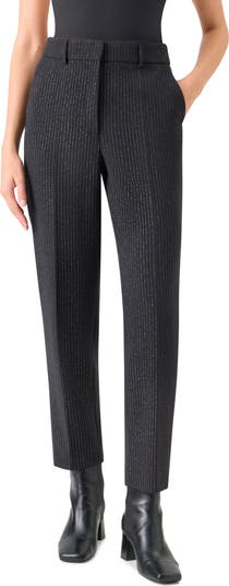 Metallic pinstripes lend eye-catching shimmer to these polished cropped pants tailored in a slim fitted silhouette