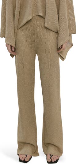 Be effortlessly chic and comfortable at your next event in these loosely knit pants featuring full-length straight legs and shimmering metallic threads.