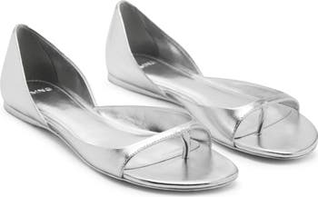 Add a pop of shine to your look with this metallic leather sandal fronted with a thong toe.