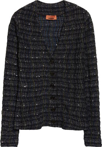 Made in Italy using Missoni's own Caperdoni loom that gives the fabric a unique texture, this V-neck cardigan showcases subtle shimmer via metallic fibers and scattered sequins.
