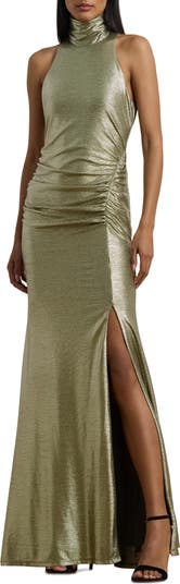 Make a stunning, standout statement in this sleeveless gown that shimmers and shines from every angle.