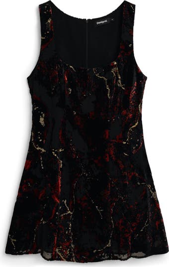 Shimmering metallic accents and rich velvet elevate this party-perfect sleeveless dress cut with a swingy flared skirt.