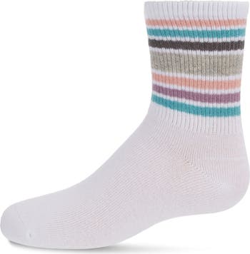 Play ball! These socks are great for your little athlete, whether they're out on the field, cheering with the squad, or hanging out in the bleachers. Crew height socks have several rings around the leg around the cuff for a classic athletic look. Lurex thread is woven throughout to give some of the rings a metallic sheen, while a cotton blend makes playing for a long time easy as ever.