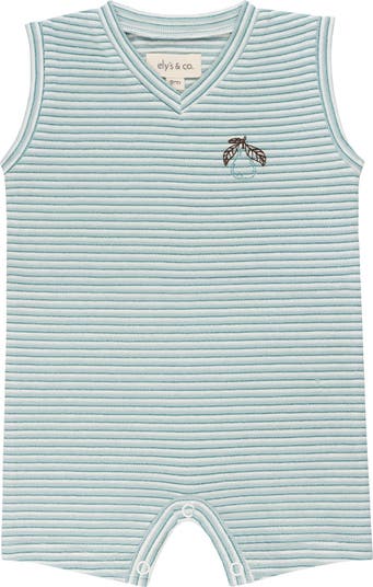 Everyday ease with a dash of shimmer. This soft cotton romper in crisp blue is accented with subtle metallic stripes for a look that’s both classic and fun. Designed with snap closures for quick changes and cozy comfort for all his little adventures.