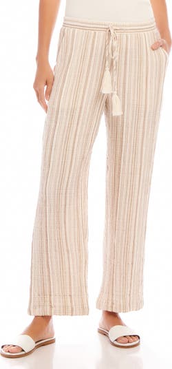 Add a breath of fresh air to your warm-weather wardrobe with these casual drawstring pants featuring tonal stripes with subtle metallic shimmer.