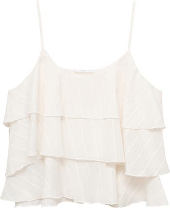Shimmery metallic threads highlight the fluttery tiers of this airy cotton-blend camisole cut in a flirty cropped silhouette.