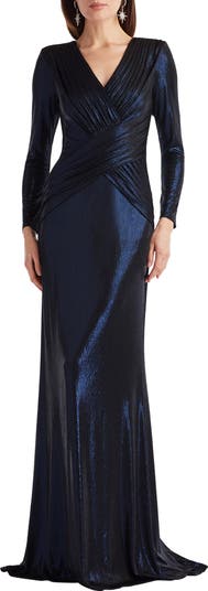 Metallic Surplice V-Neck Long Sleeve Gown