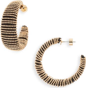 Gleaming ball chains wrap around inky hoop earrings, giving your look a richly textured finishing touch.