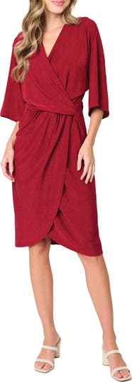 A sprinkle of sparkle brings festive joy to a knit dress designed in a graceful silhouette.