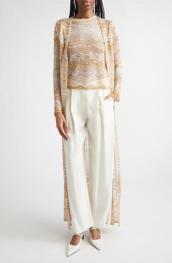 Metallic threads glint throughout the golden and amber zigzag stripes of this duster-length cardigan from the iconic Italian knit house.