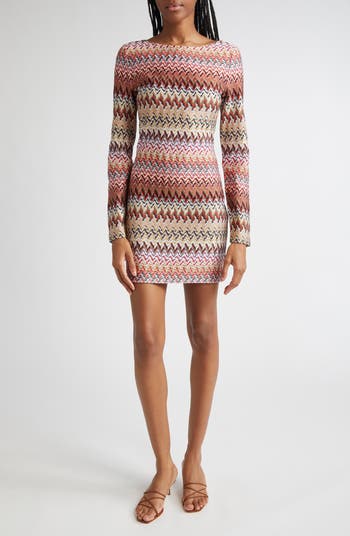Iconic since their '60s debut, Missoni's signature zigzags bring kaleidoscopic color to this raschel-knit minidress shimmered with twinkling metallic threads.
