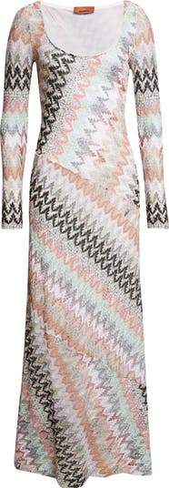 Iconic since the '60s, Missoni's signature zigzags get glitzed up with twinkling metallic threads on this curve-contouring dress that reveals sultry glimpses of skin beneath its lace-like, ultralightweight knit construction.