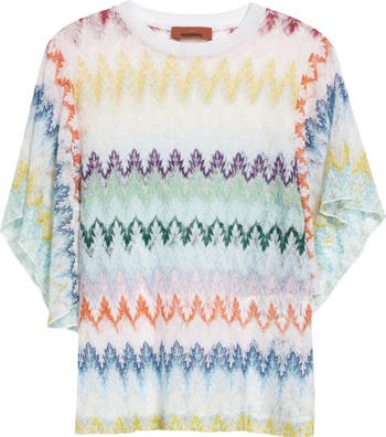Iconic since the '60s, Missoni's signature zigzags get glitzed up with twinkling metallic threads on this flutter-sleeve top that reveals peekaboo glimpses of skin beneath its ultralightweight, lace-like knit construction.
