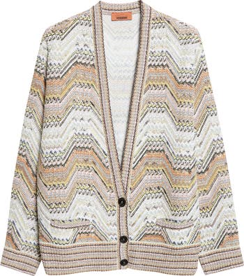 Iconic since the '60s, Missoni's signature zigzags get glitzed up with scores of twinkling sequins and metallic threads in this wool-enriched cardigan made with hand-spun yarns from the maison's Caperdoni loom—fusing the flexibility of knitwear with the structural integrity of woven fabrics.