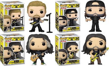American heavy metal band Metallica is here to take your music lineup by storm! Create an unforgettable music experience in your collection when you clear the stage for POP! James, Robert, Lars, and Kirk in their ensemble from Metallica's hit album 72 Seasons. Cue the spotlights and make this legendary band part of your Funko Pop! rocks collection. Vinyl figures are approximately 4.1 and 2.5 in (10.4 and 8.9 cm) tall. Each comes individually packaged in a Funko Pop window display box.