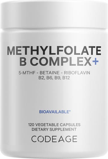 Codeage Methylfolate B Complex+ offers a blend of folate as 5-MTHF, riboflavin vitamin B2, vitamin B6, vitamin B12 in its methylated form, and betaine for a comprehensive vitamin B complex formula. 2-month supply.